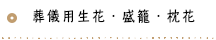 ご葬儀における、各種生花や盛籠・枕花などもご用意いたします。